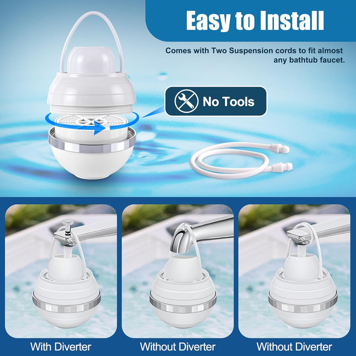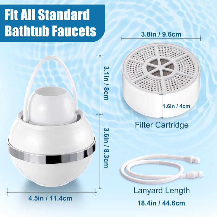 Removes contaminants. BPA-free. FDA & CDC approved. Universal fit. 2,500-gallon capacity. As per all of our items, the 5-stage filtration bath filter ball is ideal for travel.