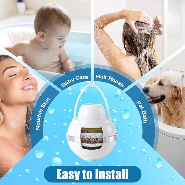 The filter is fortified with Vitamin C balls, mineralizing balls, and magnetic energy balls to enrich water with oxygen and vital minerals, helping to hydrate and soften skin and improve hair health.